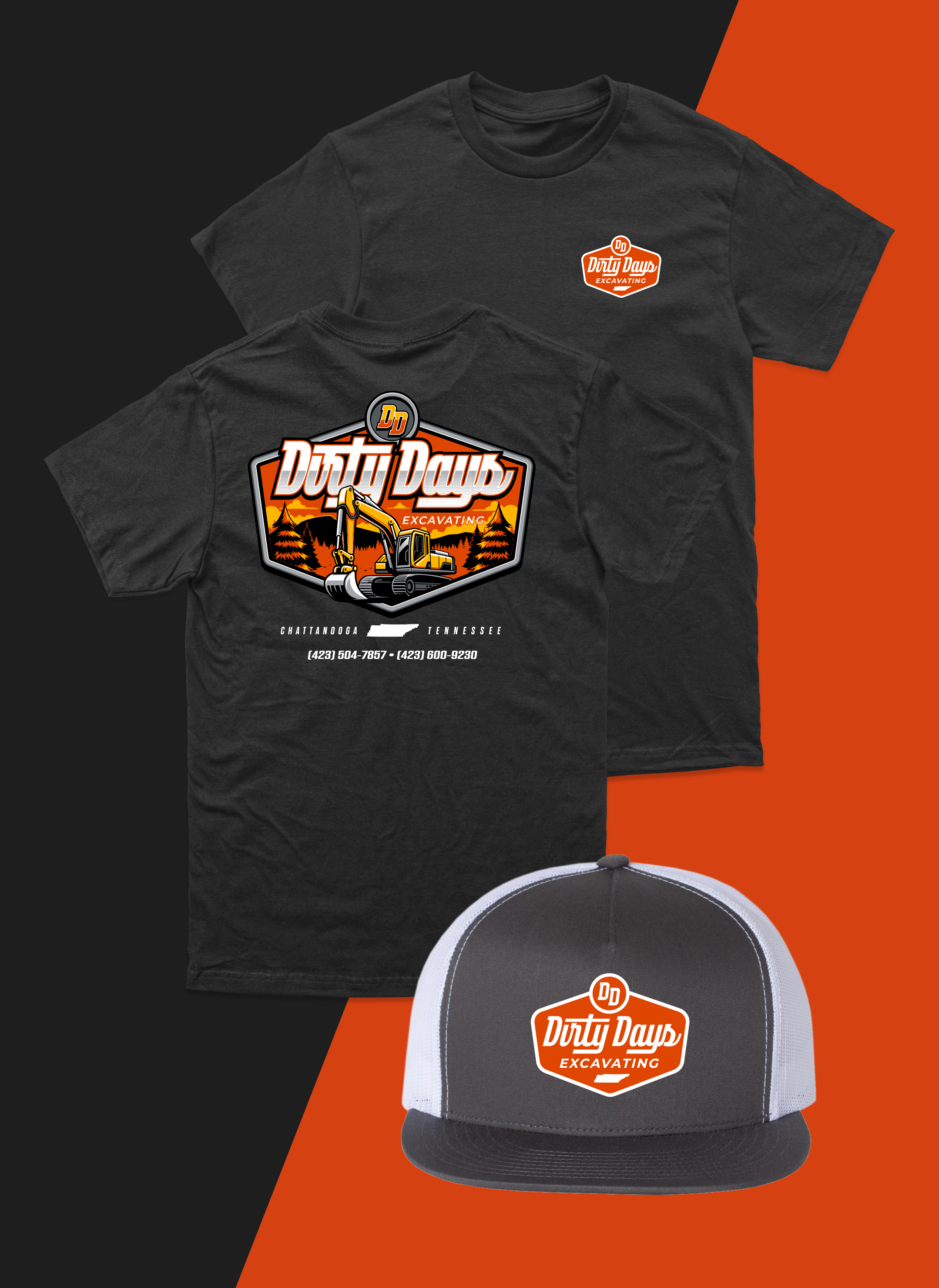 Logo and apparel designed for Dirty Days Excavating in Chattanooga Tennessee.